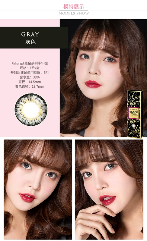 Richbaby sê-ri vàng đen đẹp pha trộn đường kính máu lớn nửa năm ném 1 mảnh kính áp tròng màu cận thị - Kính đeo mắt kính