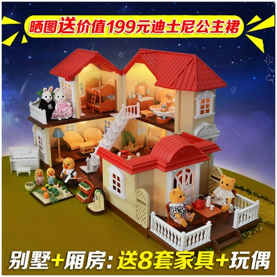 Rừng thắp sáng ngôi nhà lớn bộ quà tặng trẻ em cô gái mô phỏng chơi đồ chơi biệt thự búp bê phòng quà tặng sinh nhật - Đồ chơi gia đình