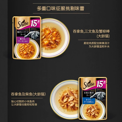 Sheba Xibao nhập khẩu súp mèo cũ đóng hộp mềm 40g * 6 đồ ăn nhẹ cho mèo đóng hộp vào thức ăn ướt cho mèo - Đồ ăn nhẹ cho mèo
