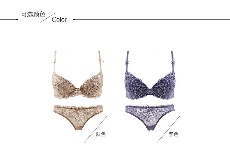 Silky Sand Dày và đơn giản thêu ren Sexy Bow Girl Đồ lót ngực nhỏ tập hợp điều chỉnh áo ngực