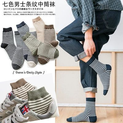 Tất nam mới sọc cotton vớ nam đại học gió dọc sọc rắn màu vớ nam hoang dã - Vớ nam