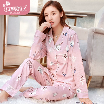 Tháng quần áo cotton mùa thu sau sinh cho con bú Phụ nữ mang thai Bộ đồ ngủ bà bầu mùa xuân và mùa hè mẫu cho bé ăn nhà - Giải trí mặc / Mum mặc