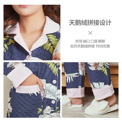 Tháng quần áo mùa thu và mùa đông cotton dày mùa xuân và mùa thu phụ nữ mang thai đồ ngủ chăn dày ấm áp sau sinh cho con bú dịch vụ nhà phù hợp - Giải trí mặc / Mum mặc