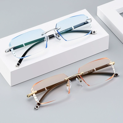 Thành phẩm, cận thị, kim cương nam, cắt tỉa, gọng mắt không vành, ánh sáng phẳng, loạn thị màu, cận thị, độ nữ - Kính khung