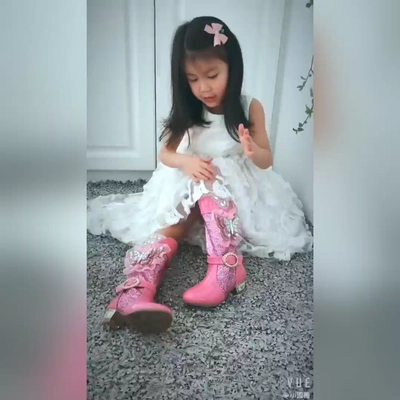 Thời trang cho bé gái giày cao gót da công chúa mùa đông sản phẩm mới màu hồng lớn, vừa và nhỏ cho trẻ em giày cao gót dài hiệp sĩ bông dài để giữ ấm