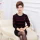 Thời trang mẹ thể thao và giải trí tuổi già áo thun xanh trẻ trung dài tay áo len sọc ngang chạm đáy áo len - Áo len thể thao / dòng may