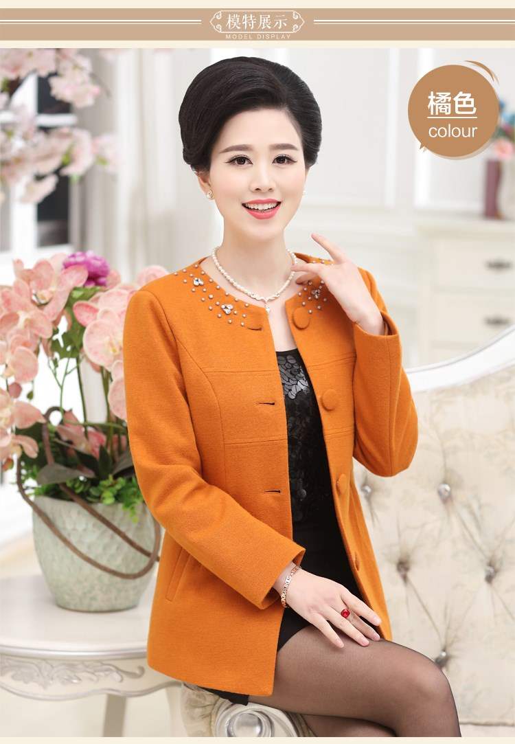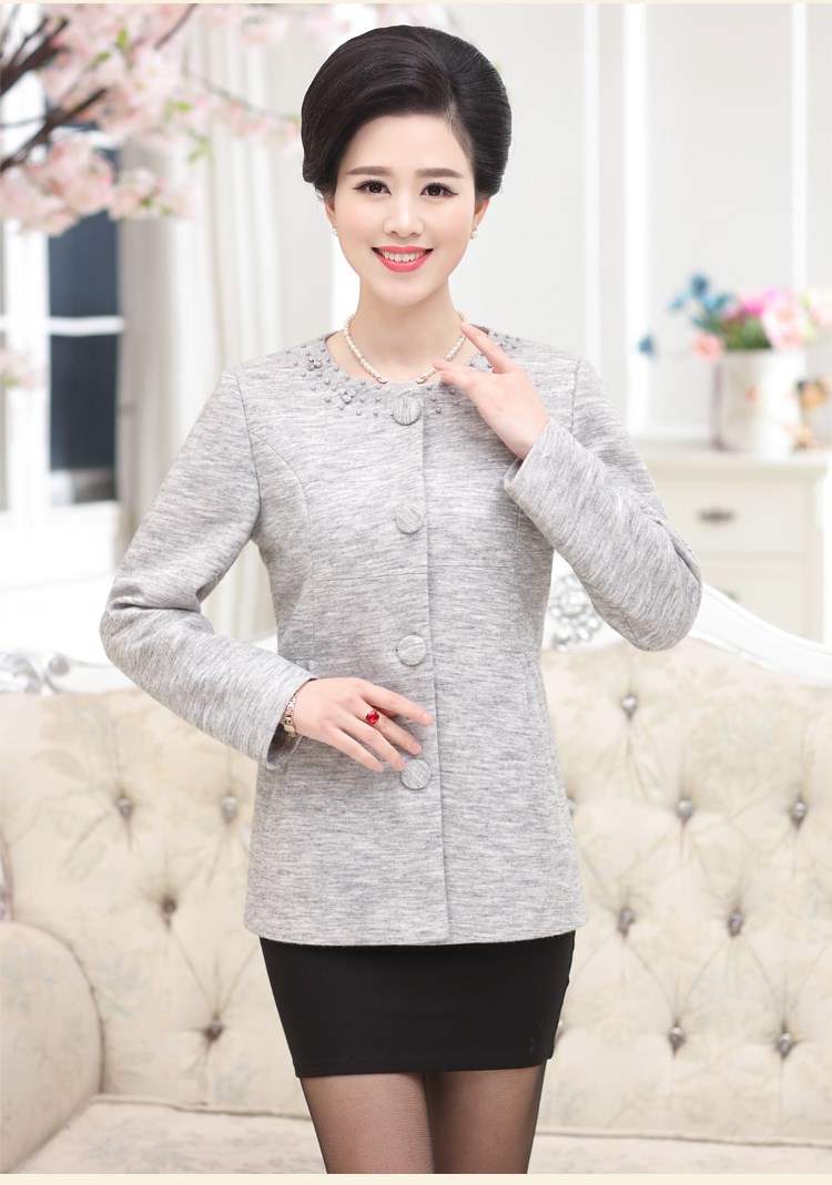 Thời trang xuân hè thu đông mới của phụ nữ và trung niên, không có cổ áo, đoạn ngắn, áo khoác len, mẹ trung niên, áo len giản dị - Áo khoác ngắn