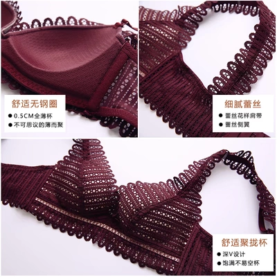 [thu thập mềm mại và mỏng] áo ngực ren retro thiết lập đồ lót siêu mỏng gợi cảm mà không có vòng thép bên thở áo ngực đóng - Bộ đồ lót