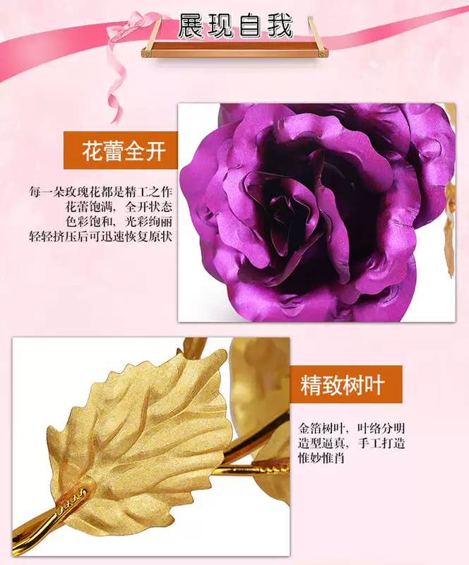 Tian Yu Ge Gold Foil Rose 24k Kim loại Hoa Vàng Hộp quà tặng Trang trí Tanabata Ngày Valentine Quà tặng Sinh nhật