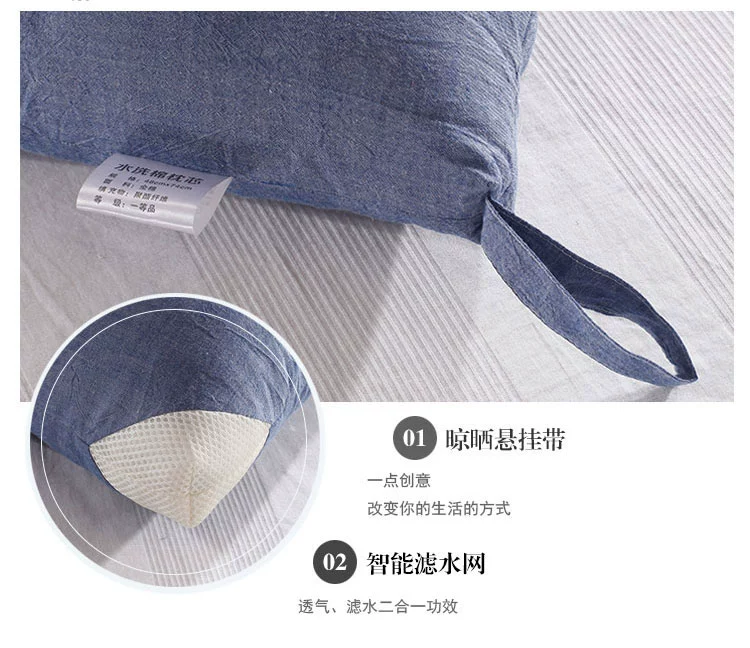 Tốt giặt bông ngủ gối lõi bông có thể giặt rắn màu đơn giản Nhật Bản lưới cổ gối đơn - Gối