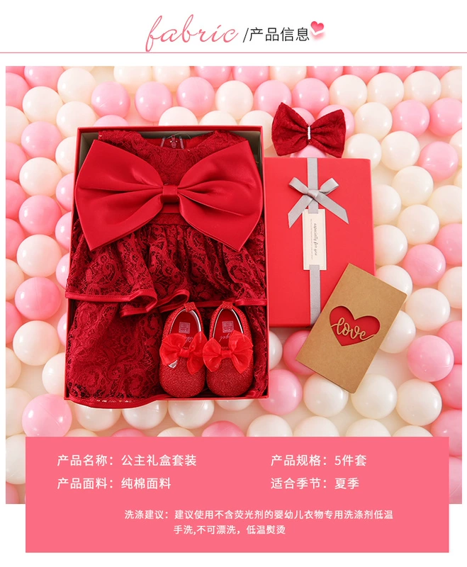 Trăm ngày Váy bé gái Công chúa Váy hộp quà tặng Trẻ sơ sinh Bộ năm tuổi Bé Hộp quà tặng Váy mùa hè