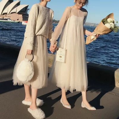 Trang phục bà bầu 2019 mùa thu mới ren vàng nóng bỏng mang bầu lưới lưới gạc váy hai dây mang thai cổ tích - Áo thai sản