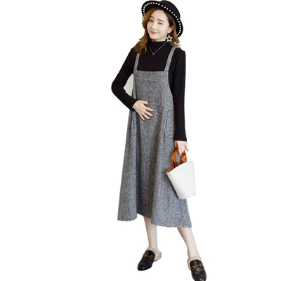 Trang phục bà bầu mùa thu 2019 phiên bản Hàn Quốc mới của mùa xuân và mùa thu phù hợp với áo len lỏng váy mẹ váy hai dây - Áo thai sản