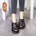 Trang trí mùa thu mới của phụ nữ giày đế dày nêm lỗ thoáng khí dép nữ xốp bánh cá miệng hở ngón chân cao gót da - Sandal