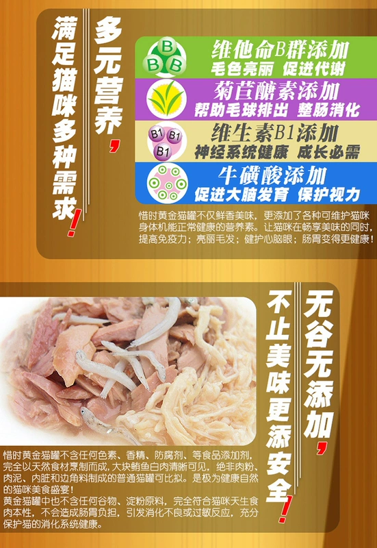 Treasuring lon vàng ít cá ngừ SEEDS cá ngừ 80G đồ ăn nhẹ mèo mèo đóng hộp mèo lon thực phẩm đầy đủ 6 vận chuyển