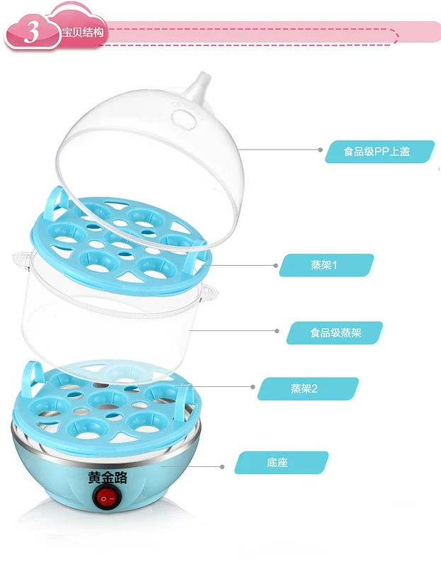Trứng hấp gia dụng đa chức năng, thép không gỉ tự động tắt trứng hấp hai lớp