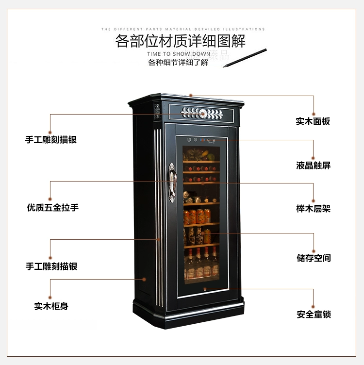 Tủ rượu Kim Trang màu đen gỗ óc chó nén vàng tủ lưu trữ nhiệt có thể được tùy chỉnh - Tủ rượu vang