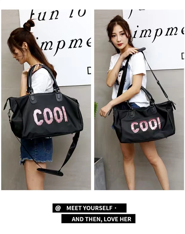 Túi du lịch khoảng cách ngắn nữ HỒNG sequin thư yoga tập thể dục nữ nhẹ không thấm nước dung lượng lớn túi duffel xách tay - Túi du lịch