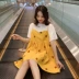 Váy bà bầu mùa hè 2019 mới in thời trang sling giả hai mảnh rời bụng bầu phụ nữ mang bầu - Áo thai sản