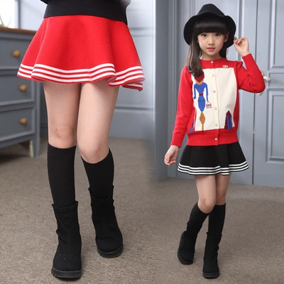 Váy ngắn cho bé váy đen mùa đông 7 tuổi Cô bé váy đỏ 9 mùa đông 8 xếp li 6 nữ giữa trẻ 4 váy 5 váy mùa đông
