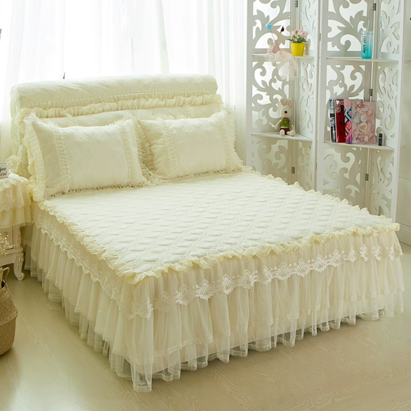 Váy ngủ bằng vải cotton dày phủ giường đơn mảnh Phiên bản Hàn Quốc của Bộ giường công chúa váy chống trượt Váy Simmons bảo vệ