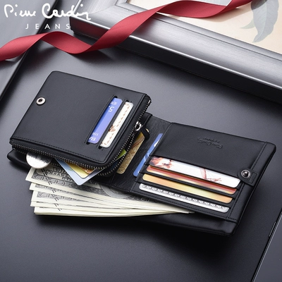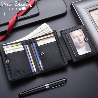 Ví Pierre Cardin Ví nam ngắn bằng da Tri-Fold Zipper Ví đa năng Da mềm Công suất lớn Ví nam - Ví tiền