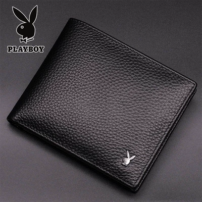 Ví Playboy da bò ngắn 2019 nam mới tùy chỉnh DIY chữ mỏng mặt cắt ngang ví chính hãng - Ví tiền