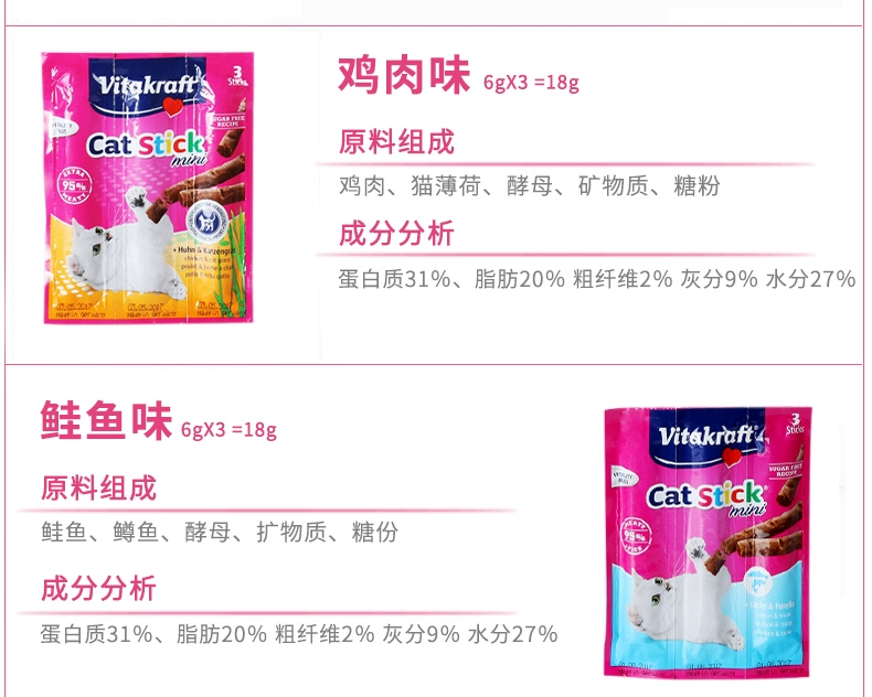 Vitakraft Wei Ta Kraft dải thịt mèo dải thịt khô thú cưng mèo ăn nhẹ mực ống 18g / 24g