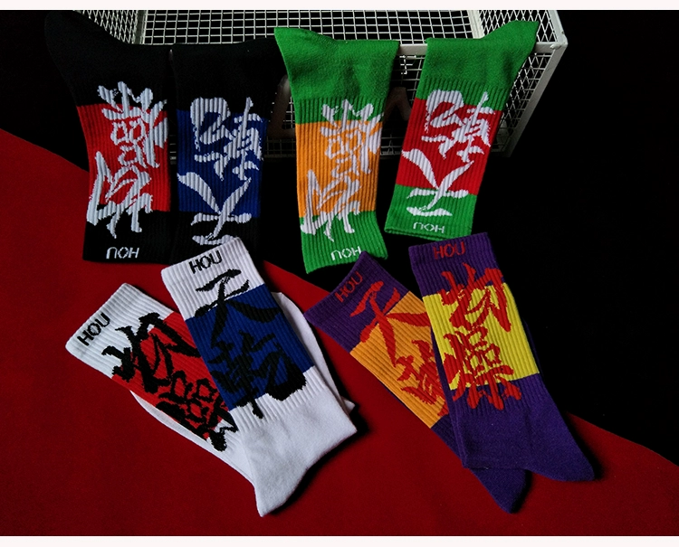 Vớ nam cotton cao cấp thẻ đường phố mùa thu và mùa đông thể thao vớ bóng rổ ngày cá tính chất khô khô đường phố ván trượt vớ - Vớ sợi tre