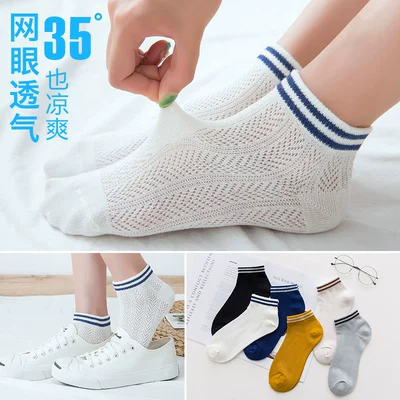 Vớ nữ mùa hè vớ mỏng miệng nông phần mỏng lưới thoáng khí vớ Hàn Quốc phiên bản siêu mỏng Hàn Quốc vớ trắng dễ thương - Vớ sợi tre