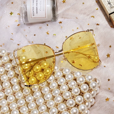Wang Hong Wang Liu Wen với khuôn mặt quá khổ kính râm nhỏ ngọc trai retro mặt đồng bằng kính râm nữ