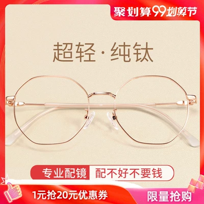 Xiao chiến với kính cận thị nữ thủy triều siêu nhẹ thuần titan khung mắt đỏ với ánh sáng phẳng đồng bằng chống khung màu xanh nam - Kính khung