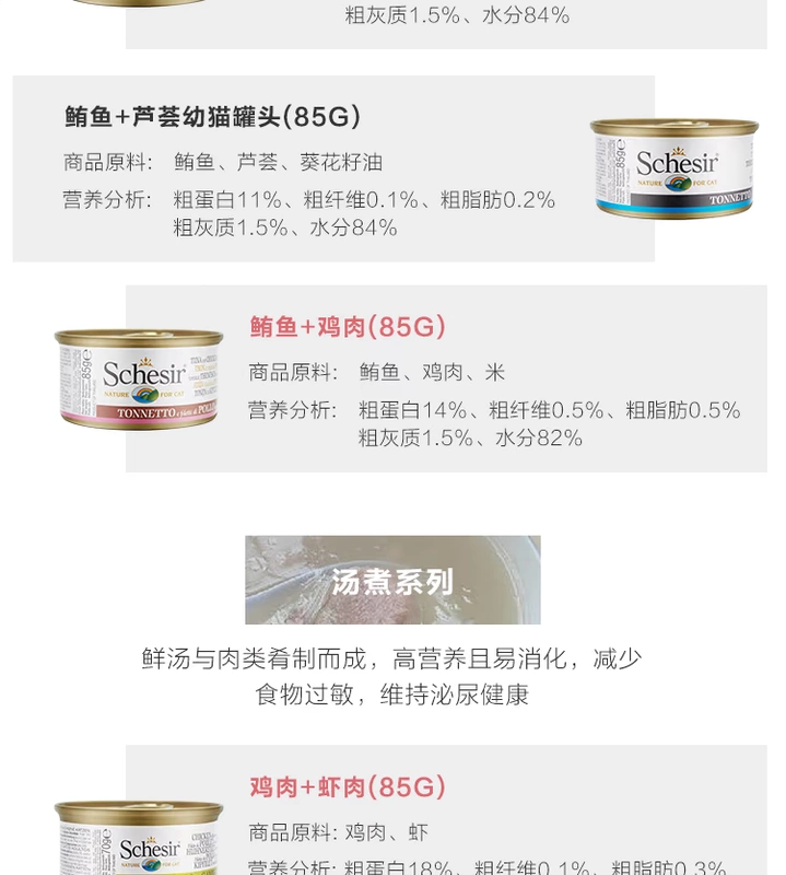 Ý nhập khẩu Schesir tuyết thơ cầu vồng mèo đóng hộp tự nhiên vào một con mèo thức ăn ướt 24 hộp đầy đủ - Đồ ăn nhẹ cho mèo