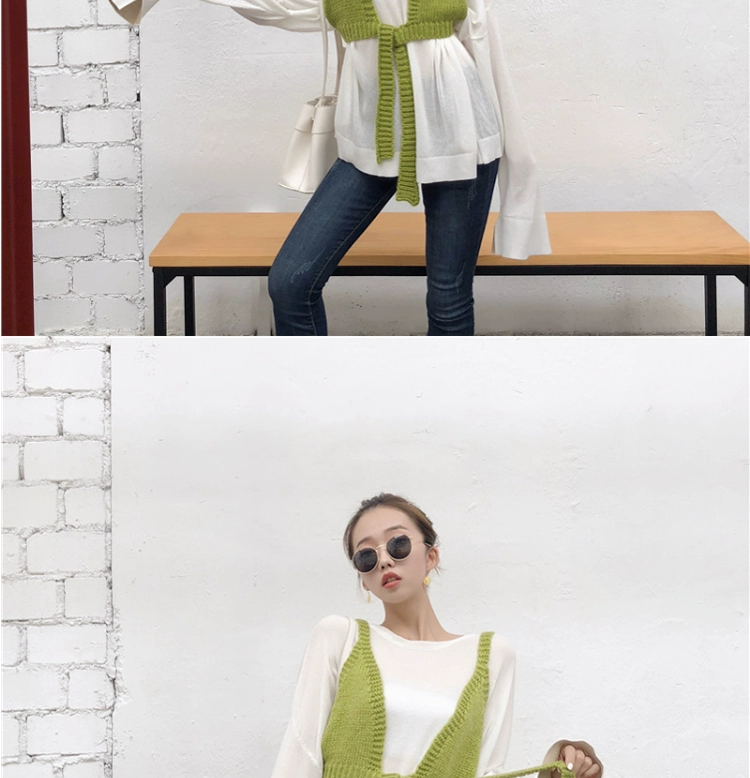 Yếm Nhỏ Áo Khoác Ngoài Nữ Xuân Thu Phong Cách Hàn Quốc Lưới Đỏ Gợi Cảm Cao Cấp Dệt Kim Không Tay Ống Ngắn Áo Vest Bên Ngoài