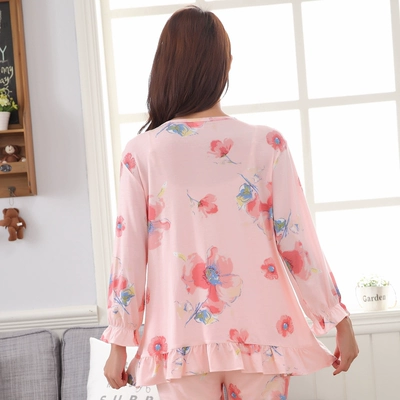 Yuezi quần áo mùa xuân và mùa thu phụ nữ mang thai đồ ngủ ra khỏi mùa thu và mùa đông sau sinh bà mẹ cho con bú dịch vụ nhà cho ăn quần áo - Giải trí mặc / Mum mặc