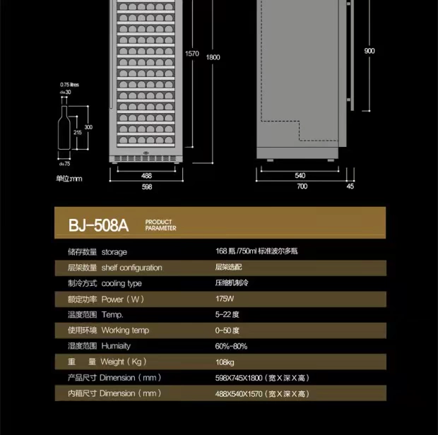 Zunbao BJ-508A thông minh nhiệt thủy tinh hiển thị tủ lạnh rượu vang tủ trà đồ uống tủ rượu di động hầm rượu - Tủ rượu vang